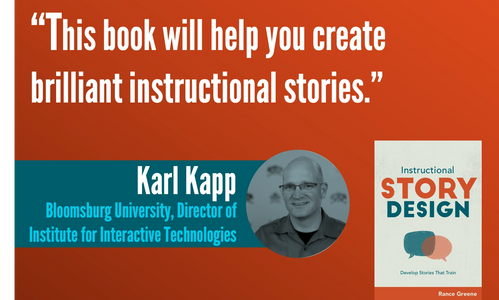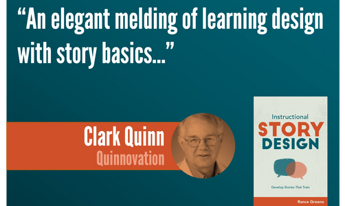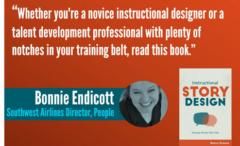 Instructional Story Design is over 300 pages of instruction, exercises, job aids, tools and loads of story examples to support you as you implement Story Design principles. No matter what your experience level is as an instructional designer, Story Design is a competency that can be mastered. It can become second nature. With the process of Story Design on your side, you won’t have problems keeping up with the pace of business. You’ll be creating stories at warp speed.